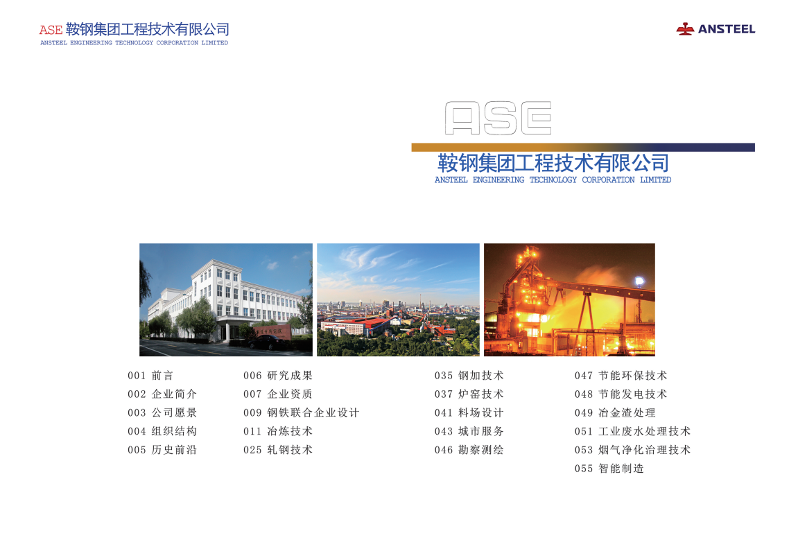 鞍鋼集團(tuán)工程技術(shù)有限公司(ASE)地處國家AAAAA級風(fēng)景名勝區(qū)—千山腳下,是原鞍鋼集團(tuán)設(shè)計研究院改制的國有控股混合所有制企業(yè),至今已有60多年的發(fā)展歷史,被譽(yù)為“中國冶金設(shè)計隊(duì)伍的搖籃”,公司注冊資本6.49億元。具有工程設(shè)計、工程咨詢、勘察測繪等8項(xiàng)國家甲級資質(zhì)和總承包資格,連續(xù)多年被遼寧省認(rèn)定為高新技術(shù)企業(yè),是國家“雙百行動”和“混改”雙試點(diǎn)企業(yè),是全國勘察設(shè)計行業(yè)百強(qiáng)企業(yè),2021年排名位列第81名,入選國企混改典型案例,位居前列。